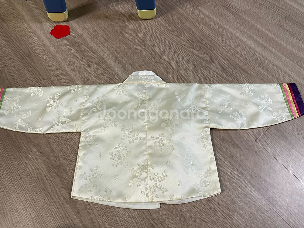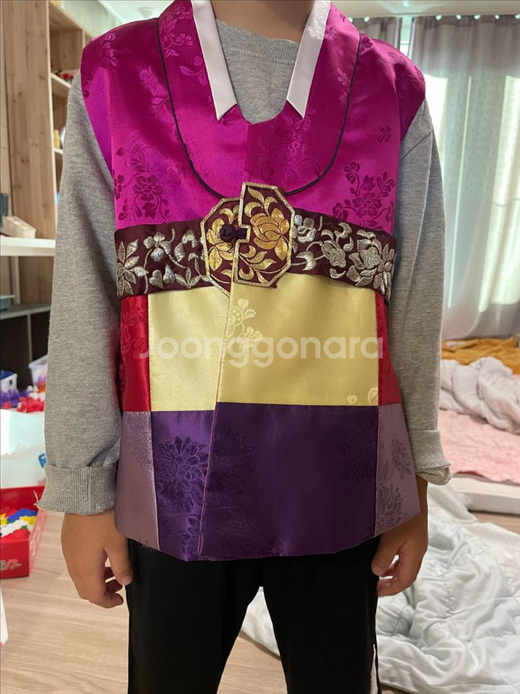 남아한복이에요 사이즈는 기재되지 않았지만 7세정도 추천 저희 아가 7세 15키로 105센치 얇은 긴팔위에 조끼입혀보았는데 품은 잘맞았고 바지 길이는 좀 길었어요 참고하세요 조끼끈은 붙어있어요 바지길이는 총장 64센치 저고리 조끼 바지 세트에요 크게 오염이나 얼룩없어요 그래도 중고이다보니 약간의 때탐정도 있을수있어요 부드러운 소재에요 택배가능 환불불가