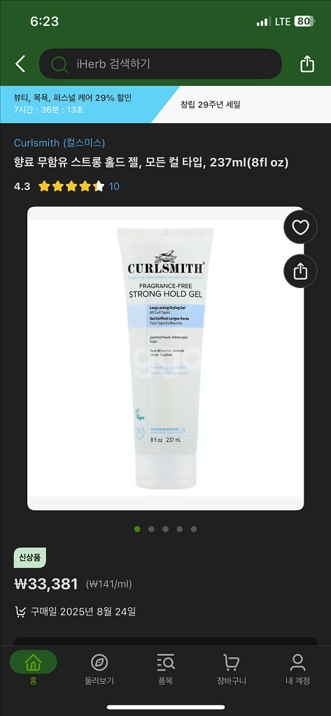 컬스미스 스트롱 하드 젤 헤어젤 입니다. 아이허브 직구 했고, 구매일은 3번째 사진과 같아요. 향료 무함유로 무향이고, 곱슬머리 사용을 위해 샀으나 2번정도 사용하고 제 머리에 맞지않아 내놓아요! CU 알뜰택배 +2000원 직거래 의령읍, 마산 양덕동 가능