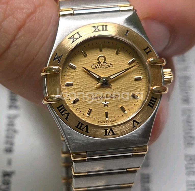⚠️아래 내용 꼭 읽고 문의주세요⚠️ !! 교환, 업자 절대 사절. 상식밖 거래, 비매너, 사적 요청, 의미없는 대화 X !! 아무런 대화없이 결제하지 마시고 대화 먼저 부탁드리며, 실시간 재고 확인 및 충분한 안내 후 거래 진행 !! 제 사진을 도용해 터무니없는 가격에 올려놓는 도용 사기글들에 주의하세요 !! 구매 전 상점 정책 필독 !! 빈티지 시계 및 기계식 시계에 대한 이해도가 있는분만 연락주세요 _________________________________ 오메가 컨스틸레이션 오리지널 골드판 별로고 18K콤비 하프바 쿼츠 여성용 빈티지 컨스틸레이션이 아닌, 네오빈티지에 속하는 오메가 컨스틸레이션 모델로, 그 중에서도 전체 오리지널 상태를 유지하고 있는 18K하프바 여성용 모델입니다. 베젤과 브레이슬릿에 18K골드가 상당히 들어간 고가 모델에 속하며, 다이얼에 자세히 보시면 마름모 다이아몬드 패턴이 들어가고, 6시 방향이 최고임을 상징하는 양각 별로고가 부착돼 매우 고급스럽습니다. 브레이슬릿 버클쪽 18K골드 메달도 분실없이 잘 부착돼 있으며, 뒷판에 시리얼 넘버도 아주 선명하게 살아있을 정도로 보존상태가 좋습니다. 양도전 큰 비용들여서 내외관 상품화 완료하여 아주 깨끗하며, 바로 착용하시면 됩니다. 시계 단품 구성이며, 실물 보고 결정하세요. 직거래 군자역입니다.