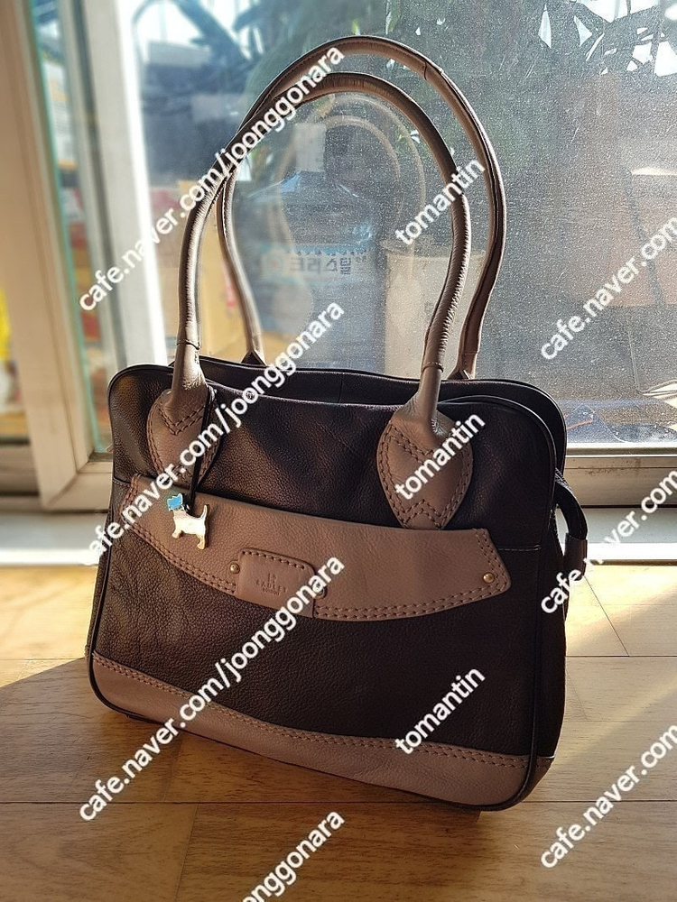 영국에서 구입했던 RADLEY london 소가죽 숄더백 다크 초콜렛 바디 베이지 카키 핸들 넉넉한 정사각 사이즈 앞 포켓 래들리 트레이드마크 강아지 참 튼튼한 소가죽 속 지퍼 넉넉한 수납 뒷면 하단 물티슈로 닦은부분 희미하게 탈색과 가방 끈 안쪽 접합 부분 가죽 터짐 눈에 잘 안띄임 택포5 에누리안됨 교환환불불가 010사일사구365사