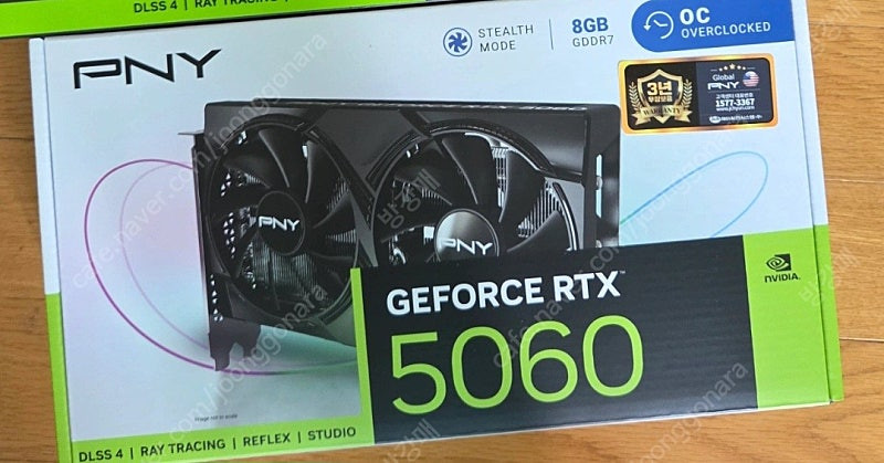 📢 제목에 "제조사/ 브랜드 명"과 "상품명”를 넣어 작성하면, 보다 빠른 판매가 가능합니다! 📢 게시글 작성 시 배송 방법에 “직거래”와 “내 위치” 설정할 경우, 보다 빠른 판매가 가능합니다! PNY rtx5060 새상품입니다. 일산쪽 직거래 가능하고 택배거래시에는 착불 네고는 어렵습니다. 🚨회원님의 거래 게시글을 노린 중고나라 운영진 사칭 피싱 사이트를 주의하세요🚨