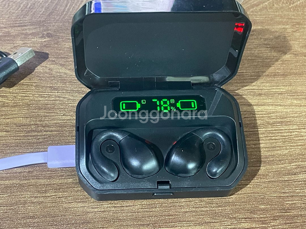 무선이어폰 귀걸이형 팝니다. 템빨 e9e9 정상 작동 확인만 하고 사용 안 한 신품 ★ 무통증 오픈형 / 블루투스 V 5.3 / 터치 방식 기능 제어 / 자동 페어링 / IPX4 생활 방수 / 850mAh 내장 배터리 / USB-C 충전 (유닛 70분 / 크래들 130분) / 3.5~4.5 재생 / 대기 40시간 / 이어셋 4g, 크래들 68g / 잔량 표시 병점역 직거래나 택포 2만 문의 3/공/둘/둘/4/공/오/공