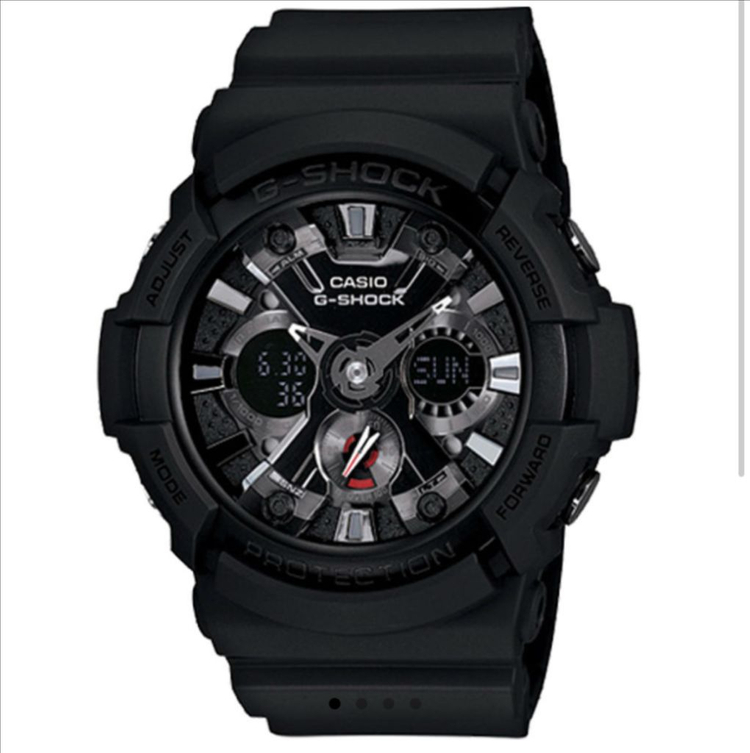 카시오 G-Shock GA-201 시계입니다. 블랙 색상이고, 생활 기스 정도 있습니다. 박스는 없고 시계 단품입니다. - LED 오토 라이트 - 월드 타임 48개국 - 스톱워치 100시간 - 타이머 24시간 - 알람 5개 - 200M 방수 - 사이즈: 가로 52.5mm x 세로 55.1mm x 두께 16.7mm / 무게 76g