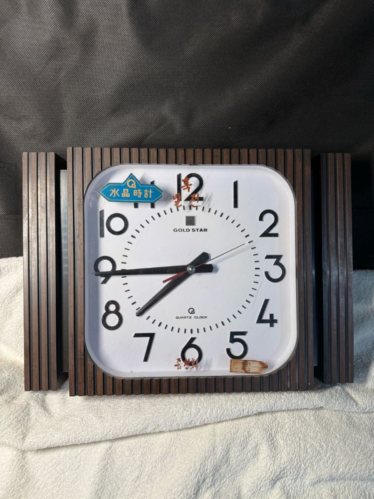 조금 큰박스에 뽁뽁이로 채워서 보내드립니다 경동보다는 우체국 택배비가 더 비싸지만 더 안전할거 같아서 우체국택배로 보냅니다 그러더라도 파손에대해서는 책임지지 않습니다 (우체국도 경동도 모두 파손면책에대해서만 배송이가능합니다) 주식회사 금성사 제조: 후면 라벨지에 도장이 희미해서 연도 식별이 안됩니다 ^구글 AI검색시, 1981년 혹은 70년대말로 추정됩니다 지난 세월에 비해 상태 아주 양호하며, 사간도 제대로 갑니다 사이즈: 가로41, 세로29.5, 두께 6.6cm Body플라스틱 ^^전면 투명 유리에 ‘축 발전, 종친회’ 글이 있음^^ 전면 상단 빨간 금성 로고, 골드스타, 수정시계, 후면 ‘금성수정전자시계 취급설명서’ 라벨도 온전합니다 ㄱ탄雾碗桌子下面左侧靠碧