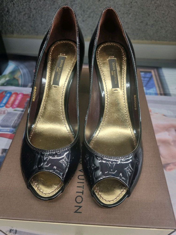 루이비통 오픈 토우 약간 다크 브라운 블랙톤 사이즈 35 1/2. 구매시기 좀 되었는데 교환시기 놓쳤어서 보관만하다 내놓습니다. 박스, 더스트백 2개 입니다. 박스에는 찾기 편하게 신발사진을 붙여 보관해... 잘 떨어질찌는 모르겠네요. 코디하기에는 편한 칼라입니다.
