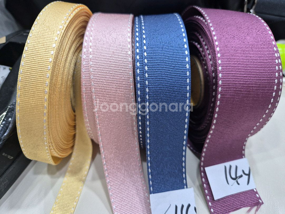 스테치 골직 리본 공예용으로 판매합니다. 색상은 사진에서 보시는 것과 같이 4가지 종류입니다. 포장이나 선물용으로 활용도가 높습니다. 문의 없으시면 바로 안전결제해주시면 됩니다! 잔량은 메모해놓은대로~~마단위!!! 일괄 5000원요 구매가격보다 저렴하게 올렸어요 네고 못해드려요 정리중이라 교환이나 반품은 못해드려요 택배는 주중 화 금 2일간만 발송가능합니다 반택못해유~~~~~~