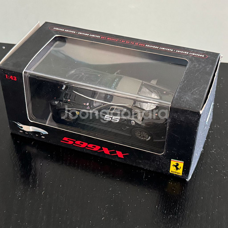 [판매] 핫휠 엘리트 페라리 599XX No.55 1:43 (Hot Wheels Elite) - 미개봉 🏁 정식 Ferrari 라이선스 제품 🔥 블랙 바디 / 레이싱 넘버 55 / 한정판 (1 of 10,000) 🚗 Hot Wheels Elite 프리미엄 다이캐스트 🛞 1:43 스케일 / 도장 & 디테일 완성도 우수 ✅ 완전 미개봉 / 본체 상태 최상 ✅ 박스 외관 일부 눌림 및 찢김 있음 (사진 참고) ✅ 수집용, 장식용 모두 추천! 💰 판매가: **45,000원 (상태 감안, 소폭 네고 가능)** 🚚 택배 / 군포 직거래 모두 가능!