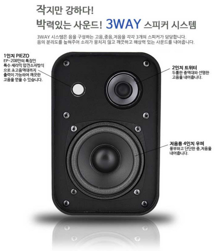 일렉혼 ELECHORN EP-208 벽걸이 스피커, 월마운트 매장용 업소용 스피커, 5.1채널 스피커, 위성 스피커 카페 매장용 또는 가정용 5.1채널 구성용 3way speaker 라 고음,중음,저음 표현 좋아요. 전체적으로 음질 좋아요. 개당 가격이고요. 총4개<2쌍> 있어요. 스피커선은 없어요. 구성품: 스피커, 브라켓, 나사2