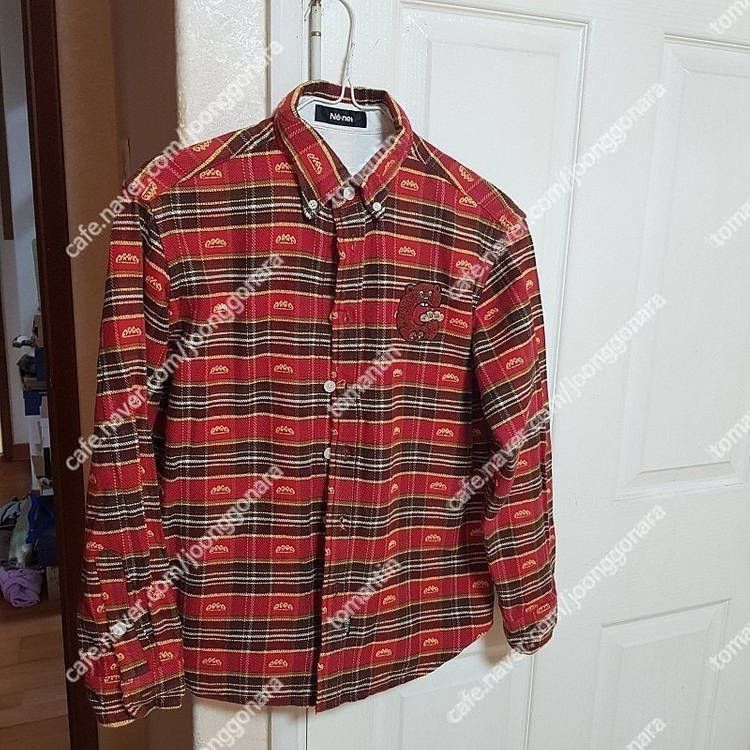 Ne-net 네넷 패치워크 긴팔 겨울 남방셔츠 55사이즈 보온성 좋은 도톰한 아크릴 내피 레드 계열 가슴에 곰돌이 패치 겉 면 100% 속 아크릴 100% 이만원 교환환불불가 010사일사구365사