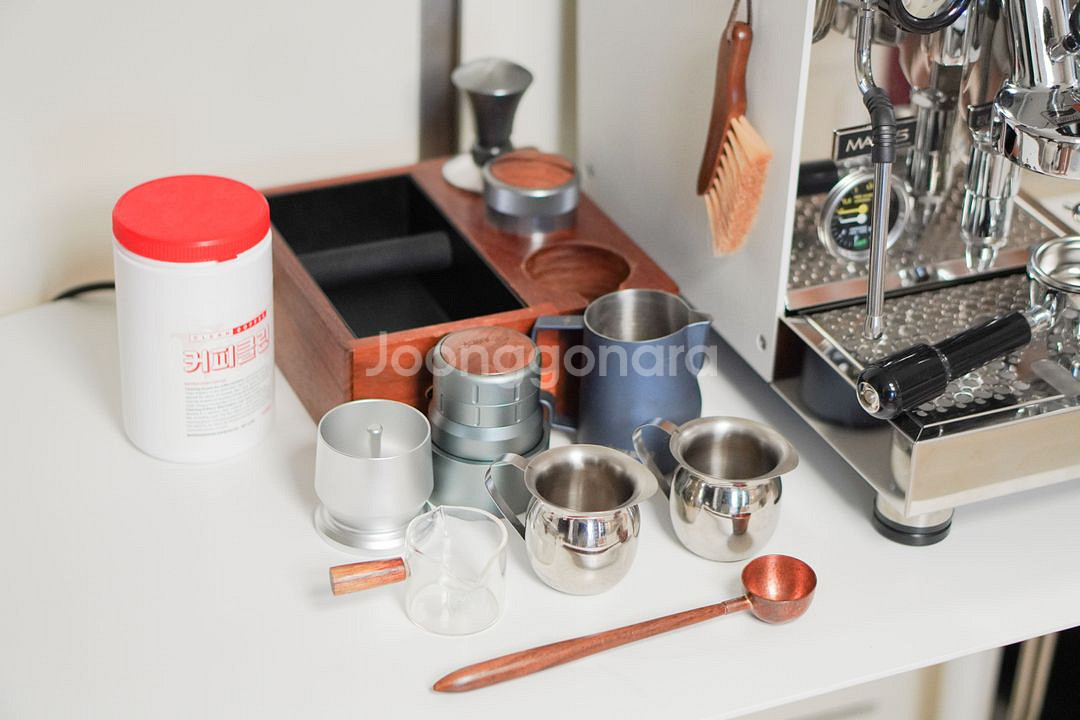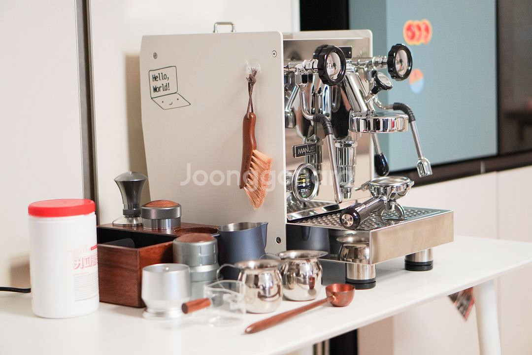 판매 가격: 800,000 원 / 가격 협의 가능 (편하게 에누리 문의주세요) 2023년 7월 18일, 국내 온라인 쇼핑몰을 통해 직접 구매한 엘로치오 마누스 V2 반자동 커피머신입니다. 올해(2025년) 1월까지 매일 2잔 정도 커피를 내리며 애지중지 사용했고, 그 이후로는 사용하지 않고 잘 보관해 두었습니다. 실사용 기간이 길지 않고 관리를 꾸준히 해온 만큼 전반적인 상태는 매우 깨끗하고 좋습니다. 두 달에 한 번씩 꾸준히 백플러싱(세정제 포함)을 진행했고, 한 달에 한 번씩은 전용 타월로 외관을 꼼꼼하게 닦아주며 관리하여 성능은 물론 외관도 신품급 컨디션을 유지하고 있습니다. 새로운 머신을 들이게 되어 아쉽지만 공간이 마땅치 않아 판매를 결정했습니다. E61 그룹헤드에서 오는 안정적인 추출 품질과 강력한 스팀 성능은 왜 이 제품이 '가정용 끝판왕'으로 불리는지 알게 해줍니다. 집에서도 카페 퀄리티의 라떼를 즐기고 싶으신 분께는 최고의 선택이 될 겁니다. 기본 구성품 및 추가로 구매한 액세서리는 사진에 보이는 모든 것을 포함해서 드립니다. 사진을 자세히 확인해 주세요. 제품 무게와 특성상 파손 위험이 있어 직거래만 진행하려고 합니다. 거래 장소는 협의 가능합니다. 오셔서 직접 상태를 확인하고 가져가시는 것을 추천합니다. 다른 게시글에 있는 그라인더와 같이 구매 시 할인 해드립니다. 관심 있으신 분은 편하게 연락 주세요. 감사합니다.