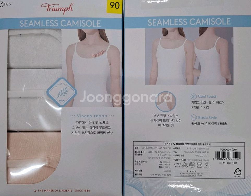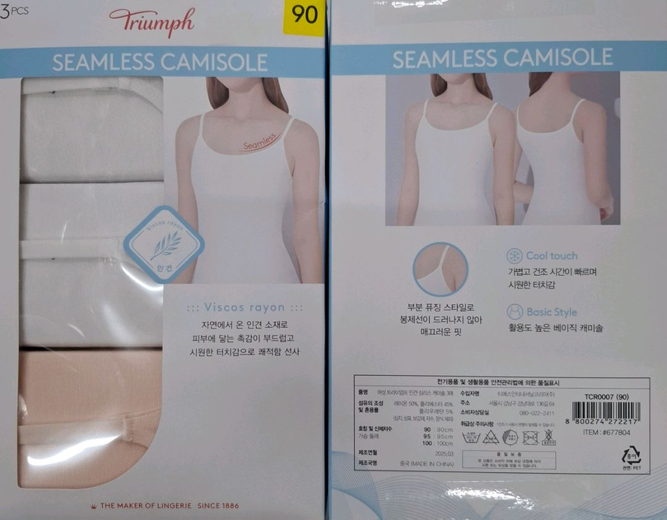코스트코에서 판매하는 "트라이엄프 여성 인견 심리스 캐미솔(3P)"입니다. 단순개봉 상품으로 미착용 새상품이나 포장이 훼손된 제품이 발송될 수 있으니 참고 부탁드립니다. 상세 스펙 사진 참고 부탁드립니다. # 품명 트라이엄프 여성 인견 심리스 캐미솔(3P) # 사이즈 90(가슴둘레:90cm) 택배 가능 남양주 별내 직거래 가능 문자나 챗주세요 010 8사1사 238사