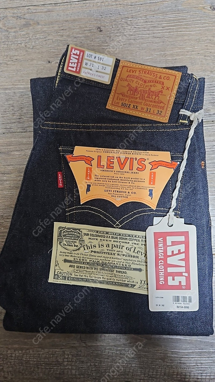 📢 제목에 "제조사/ 브랜드 명"과 “상품명”을 넣어 작성하면, 보다 빠른 판매가 가능합니다! 📢 게시글 작성 시 배송 방법에 “직거래”와 “내 위치” 설정할 경우, 보다 빠른 판매가 가능합니다! LEVI'S® VINTAGE CLOTHING 1954 501 JEAN "RIGID" (#50154-0090) W31L32 새상품 입니다. 보관상구김 양해바랍니다. 노클레임 노리턴 부탁드립니다. 🚨회원님의 거래 게시글을 노린 중고나라 운영진 사칭 피싱 사이트를 주의하세요🚨