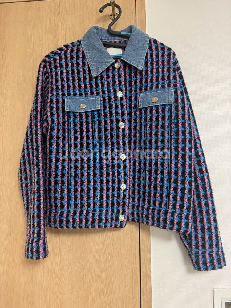 Sandro 트위드 자켓입니다. 핑크, 블루, 블랙 색상의 트위드 소재로 이루어져 있고, 데님 소재의 칼라와 포켓이 포인트입니다. 상태는 매우 좋아요 올해 데님이 유행인데 멋스럽게 잘 입으실 수 있어요 사이즈 1사이즈 *중고 상품 특성상 , 제가 미처 발견 못 한 미세하다 있을 수 있습니다 이로인한 반품 환불 교환 안됩니다 예민하신 분은 정매장 구매 권해드립니다*
