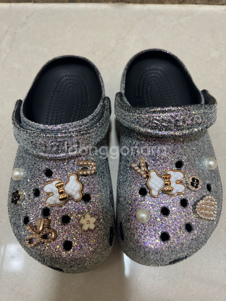크록스 글리터 클로그 샌들입니다. 반짝이는 은색 글리터로 덮여 있고, 귀여운 지비츠 장식해놨습니다 실착용으로 인한 사용감 거의 없습니다 사이즈 m4,w6 입니다 *중고 상품 특성상 , 제가 미처 발견 못 한 미세하다 있을 수 있습니다 이로인한 반품 환불 교환 안됩니다 예민하신 분은 정매장 구매 권해드립니다*