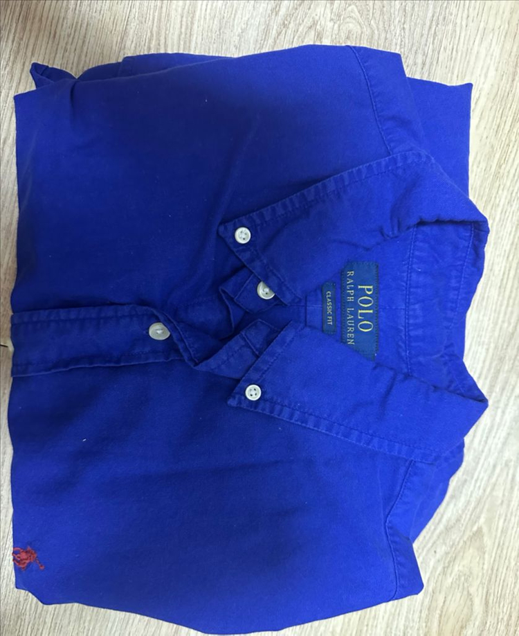 폴로 랄프로렌 클래식핏 셔츠 정품입니다. 선명한 파란색에 빨간색 로고가 포인트인 제품입니다. 사이즈는 M이고, 하자 없이 깔끔합니다. 별도 문의 없으시면 바로 안전결제 부탁드려요! 이천 폴로 랄프로렌 아울렛에서 구매하였습니다 정품 인증을 위한 QR 택 있습니다