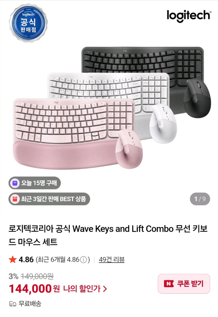 로지텍의 고급형 무선 키보드와 마우스 세트로 타이핑감이 정말 부드럽고 사용감이 좋아요. 핑크와 화이트 그레이 세 가지 색상으로 깔끔하고 예쁜 디자인이라 책상 위에 두면 분위기도 확 살아나는 제품입니다! 택포가격으로 포장도 뜯지않은 새상품입니다.