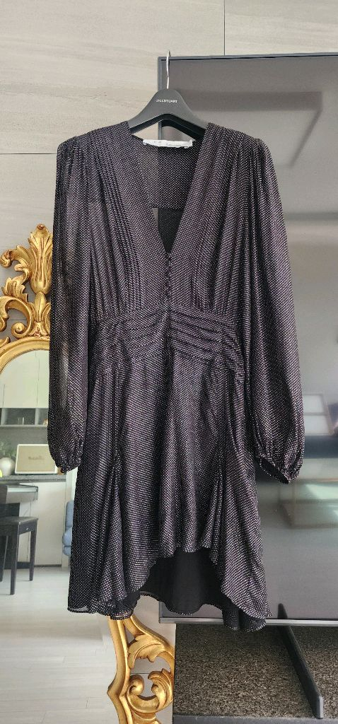 이로 원피스. 거의 미착용상태로 여분단추까지 비닐팩에 달려있어요. 이로 스타일 아시겠지만 보기랑 다르게 입으면 허리잘록 우아하게 섹시한 스타일이랄까.. 은색 도트 반짝거리는 원단이구요. 사이즈 34. 44-55 가능하실듯요.