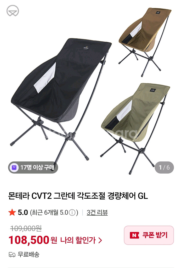 몬테라 CVT2 그란데 사이즈 입니다 색상은 블랙 입니다 L사이즈보다 커서 안정감있고 편안합니다 가볍고 튼튼해서 캠핑용, 나들이용으로 좋아요 몇번 사용하지 못해서 상태 좋습니다 직거래 하남, 택배 착불 교환, 반품 사양