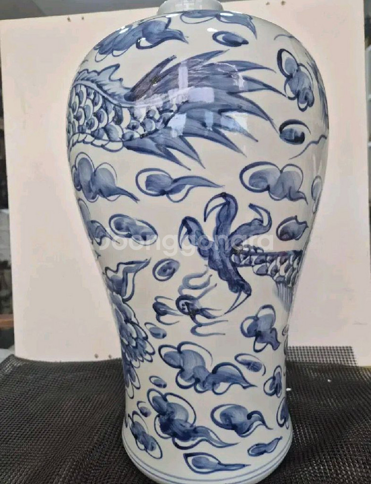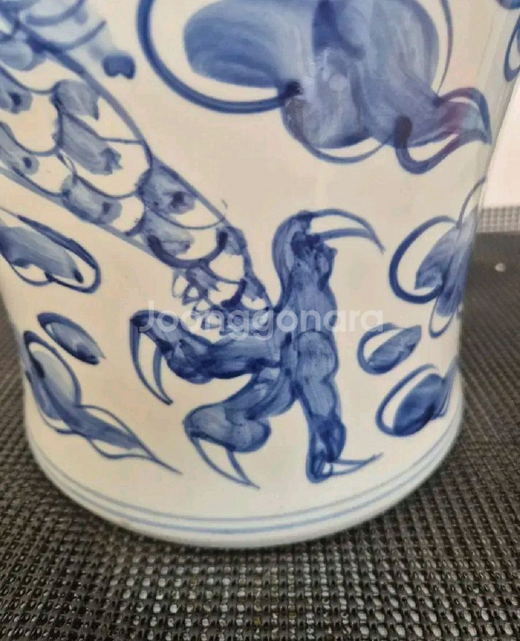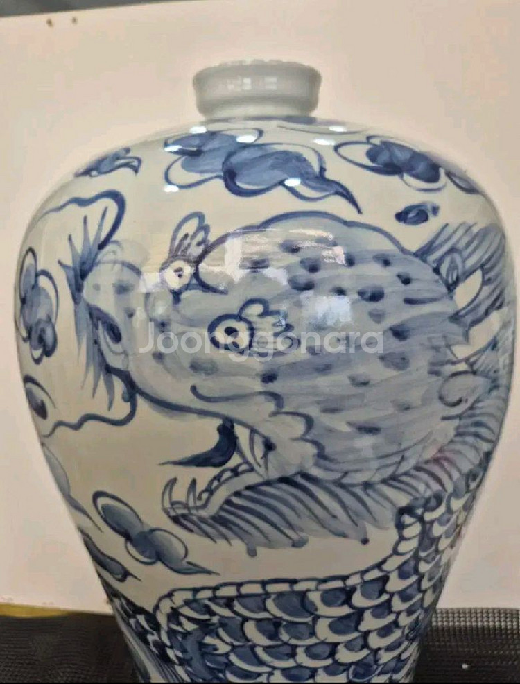 전주에서 운영하던 전통 찻집 정리하며 내놓습니다. 청화백자에 용이 힘차게 그려진 대형 항아리로, 용은 권위·번영·길운을 상징하여 수집가, 인테리어용, 선물용으로도 가치 있는 작품입니다. 📏 사이즈 대형 항아리 높이48 가로26센티이며 상태는 깨끗하며 발톱4개입니다 묵직하고 안정감 있는 크기 ✨ 특징 청화백자 특유의 푸른빛과 선명한 필력으로 그려진 용 문양 구름 사이를 뚫고 나아가는 용의 모습이 힘과 생명력, 번영을 상징 장식용·전시용으로 공간의 품격을 높여줍니다 폐업 정리 특가 희귀한 디자인임에도 불구하고 저렴하게 정리 판매합니다. 무료 택배 배송 안전하게 포장해 전국 어디든 무료로 보내드립니다. 전통 도자기, 청화백자, 동양미술품을 좋아하시는 수집가 분들께 좋은 기회입니다. 선착순으로 연락 주세요!