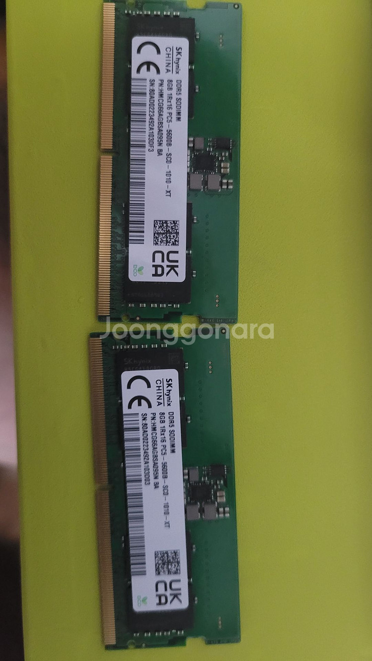 SK 하이닉스 DDR5 SODIMM 8GB 램 2개 판매합니다. 노트북 램으로 사용 가능하며, PC5-5600B입니다. 깨끗하게 사용했고, 작동 이상 없습니다.