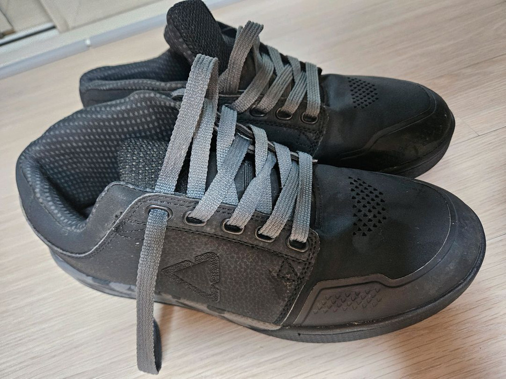 Leatt 3.0 Flat 산악 자전거 신발입니다 사이즈는 EU43, US9입니다 플랫 페달(평페달) 전용으로 그립력이 좋아요 아이가 발이 커지기도 하고 클릿슈즈로 바뀌어서 몇번 못 신었어요 그래도 사용감은 좀 있으니 사진 참고해주세요