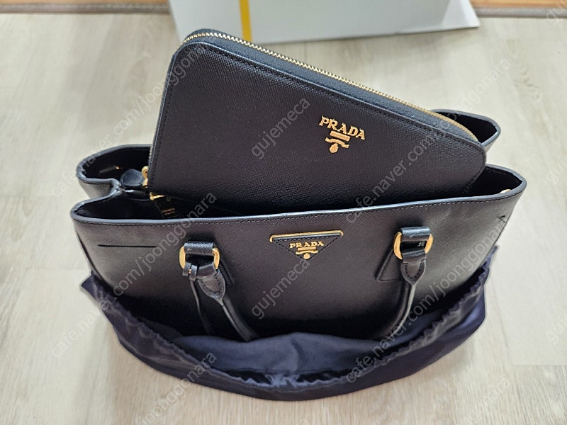 프라다 사피아노 럭스 핸드백 및 장지갑 네로 컬러 판매 합니다. 1. 핸드백 - 13년 결혼할때 구매해 주었는데 정확히 2회 결혼식장에 갈때만 착용 했다고 합니다. 탑핸들로 들수고 있고 별도 크로스로도 착용 가능하게 크로스끈 포함 입니다. 크기는 A4용지 싸이즈 정도 되며 구매 시 롯데백화점 본점에서 구매하였으며 현재 가방 가격이 많이 올랐습니다. 2. 장지갑 - 19년 아울렛에서 구매 하였고 거의 사용 안했습니다. 크기는 A4용지 1/3 정도 됩니다. 현재 해당 장지갑도 가격이 많이 올랐습니다. 모두 더스트백, 게런티카드, 택, 구매영수증 등 풀셋으로 오염 전혀 없이 상태 좋으며, 세트로 최고 상품으로 프라다 쇼핑백에 넣어 드립니다. 의왕시 오전동으로 왠만하면 직거래 원합니다. 박종민, 010 2706 6935