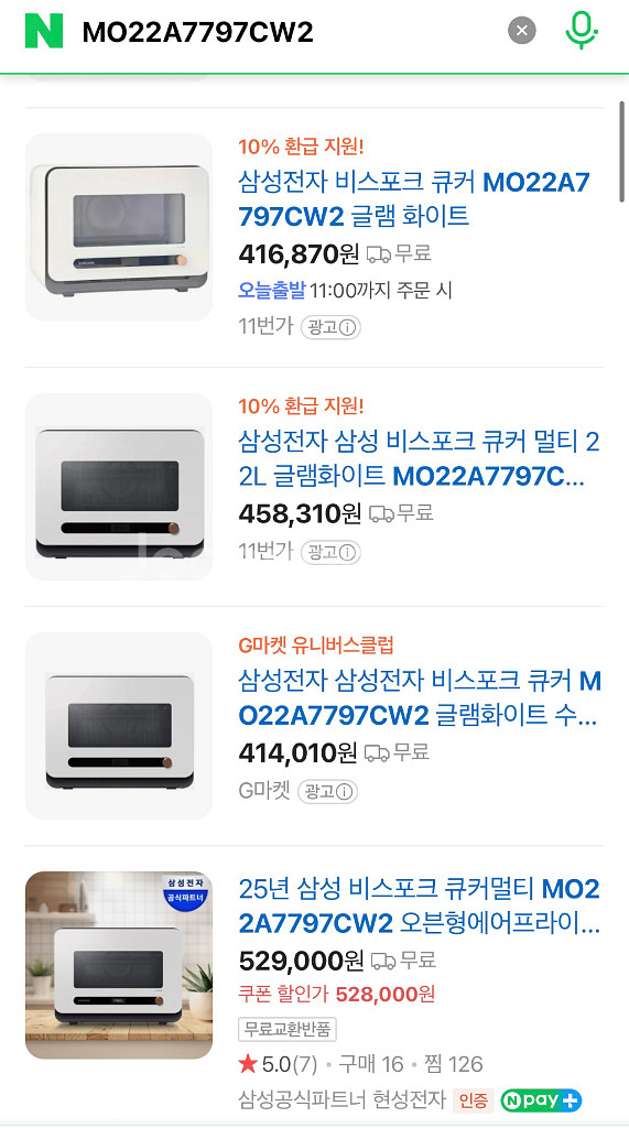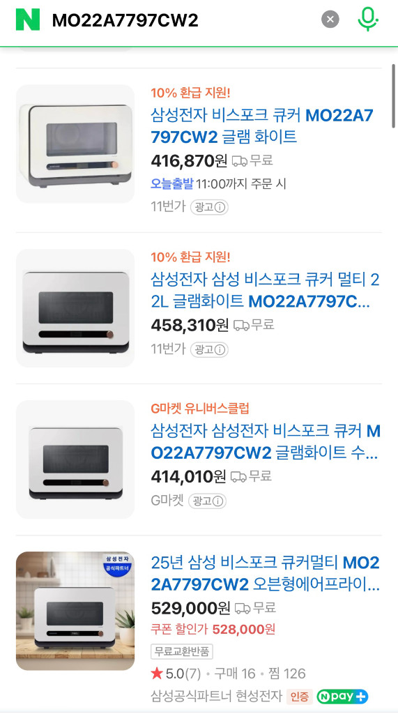 삼성 비스포크 큐커 멀티 22L 글램화이트 (미개봉/새상품) - MO22A7797CW2 - 에어프라이어, 전자레인지, 토스터 기능이 하나에 다 들어있어 편리합니다 - 정가는 499,000원입니다 https://www.samsung.com/sec/qooker-multi-ovens/qooker-mo22a7797cw2-d2c/MO22A7797CW2/