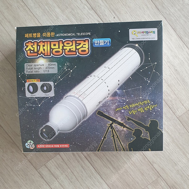 페트병을 이용한 천체망원경 만들기 키트 새상품입니다. -60mm 구경, 470mm 초점 거리 -내가 만든 망원경으로 하늘의 별을 관찰 착불 10,000원입니다. 직거래 경남 창원입니다.