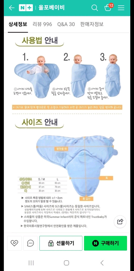 스와들미 아기 속싸개 S 0-3개월용입니다 50-65cm, 3.2-6.4kg 속싸개 종류가 다양한데 아기마다 맞는게 달라서 써보시고 추가 구매하시면 좋아요 반값택배(cu, gs, 세븐일레븐)로 보내드립니다