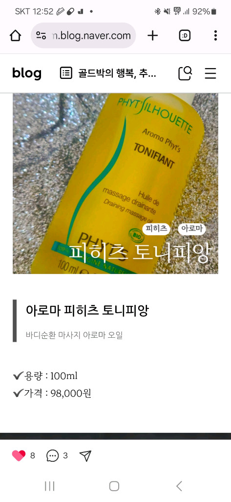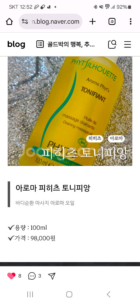 아랫배차고 순환안되서 검해져서 이거효과좋아요~ 발라주고 가볍게문질러주면끝이예요 여자들한테 최고예요 ㅅㄹ통도 좋아져요 붓기 순환 노페물배출에 효과좋아요 에스테틱 전문샵에서 쓰는제품입니다 . 최저가 2028년4월29일 로 아주넉넉한유통기한입니다