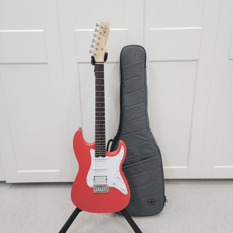 헥스 일렉기타 E100 레드 모델 - E100 FR 정가 299,000원 -> 할인가 219,000원 구성품 - 본품,가방,케이블,스트랩,피크3개 리퍼 상품입니다. 중고,반품 상품이 아닌 제조 과정에서 미세한 흠집이나 마감이 아쉬운 상품을 재검수하여 판매하는 상품으로 기능상 문제가 없는 상품입니다. 무료 배송 가능합니다.^^