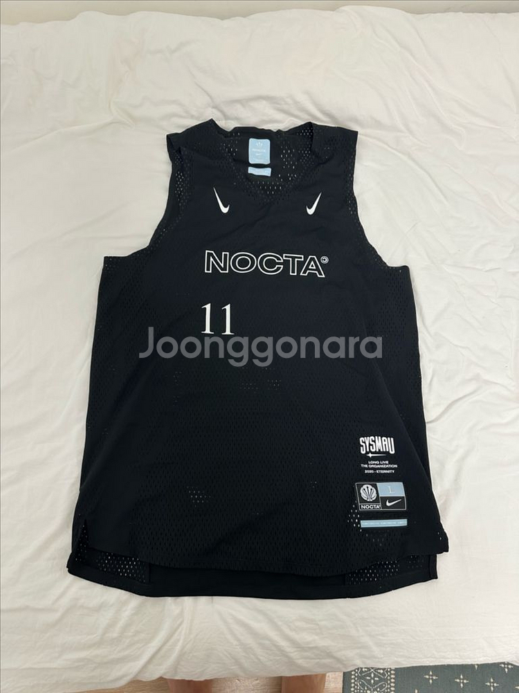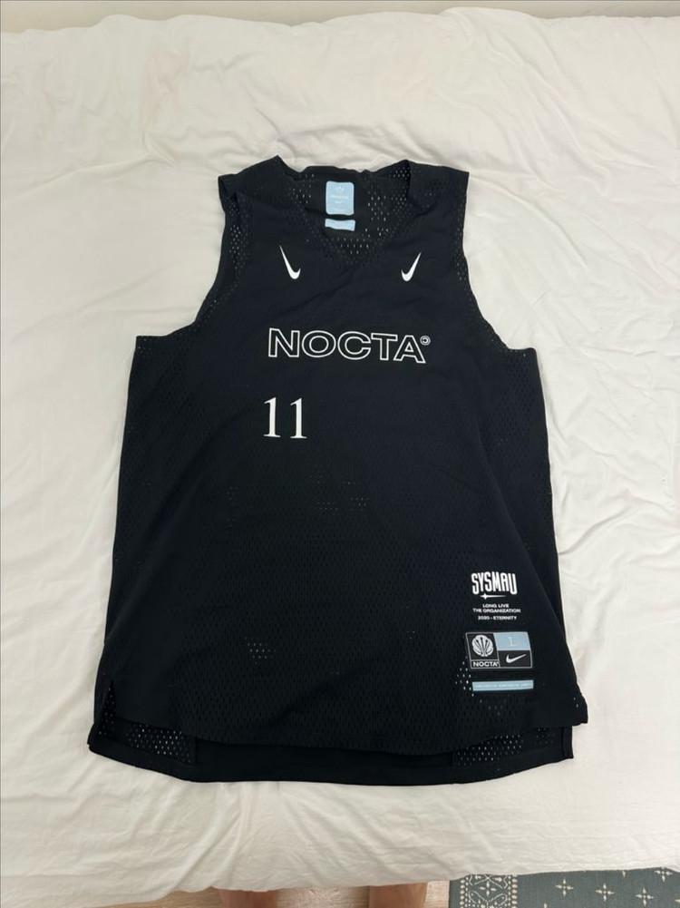 검정색 나이키 녹타 농구 져지 슬리브리스 L 사이즈입니다. "NOCTA" 레터링과 숫자 "11"이 흰색으로 프린팅 되어 있습니다. 통기성이 좋은 메시 소재로 제작되었습니다. 별도 문의 없으시면 바로 안전결제 부탁드려요! 실측은 L-xL정도입니다.