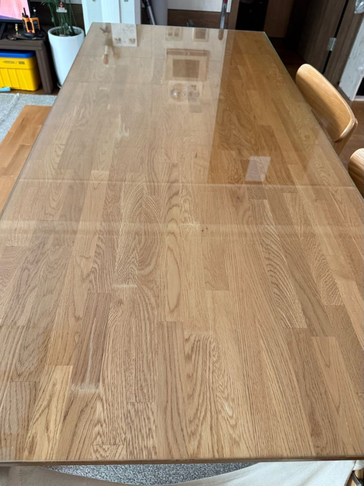 한샘 원목 식탁세트 입니다. • 구성품: 식탁, 등받이 의자 2개, 벤치의자 1개, 강화유리 강화유리는 따로 제작해서 올려 놓고 사용했으나 유리 치우고 보니 코팅부분이 좀 뜬거 같아요..;; 등받이 의자 1개는 방석라인에 까임 있으니 사진 참고해 주시길 바랍니다. 편하게 문의 주세요 <다른 플랫폼에도 동시 판매하고 있어 판매완료될 수 있으니 참고하시길 바랍니다. >