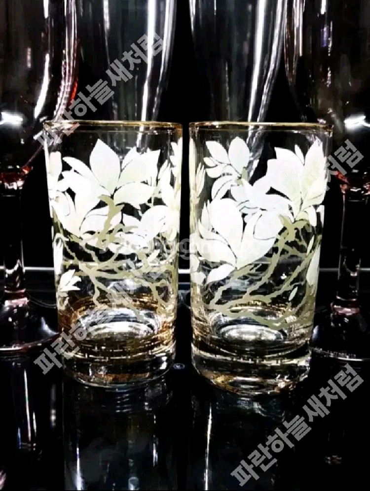*사진 상태가 좋지 않아 양해 부탁드려요* 80년대 빈티지로 알려진 미국제조의 이 유리잔은 손그림으로 섬세합니다 '골든루터스' 또는 아래의 금장 패턴을 칭해 '골든그리스키' 라고 한답니다. 지름 6cm 높이 11.5cm 위쪽 금장 라인은 다소 매끄럽지 못한 부분 있으나 세월감에 비해 우수한 편입니다. 반품 교환 환불 불가합니다
