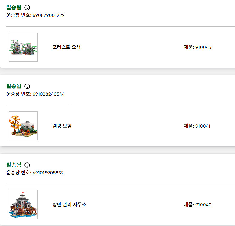용산, 여의도, 을지로에서 직거래 가능합니다. 카톤박스 그대로 배송가능하며, 배송같은 경우 배송비는 개당 5천원입니다. 910043 포레스트요새 (카톤박스) - 39만원 910041 캠핑모험 - 9만원 910040 항만 관리 사무소 (카톤박스) - 23만원 910036 바다집 (카톤박스) - 27만원 910038 으시시 섬 (카톤박스) - 37만원 910035 벌목철도 (카톤박스) - 28만원 910044 와일드 웨스트 익스프레스 (카톤박스) – 40만원 910047 중세의 무역항 (카톤박스) - 31만원 910045 공성전 캠프 (카톤박스) - 35만원