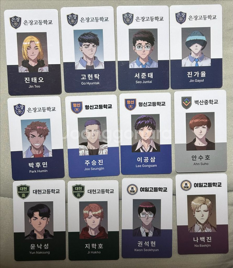 개인정보(거래정보)를 주고받는 행위는 사기에 노출될 수 있으므로 즉시 중고나라로 신고해 주세요약한영웅 학생증 개당 1.0 박후민, 진태오, 윤낙성, 주승진, 이공삼, 나백진, 진가율, 지학호, 고현탁, 안수호 X
