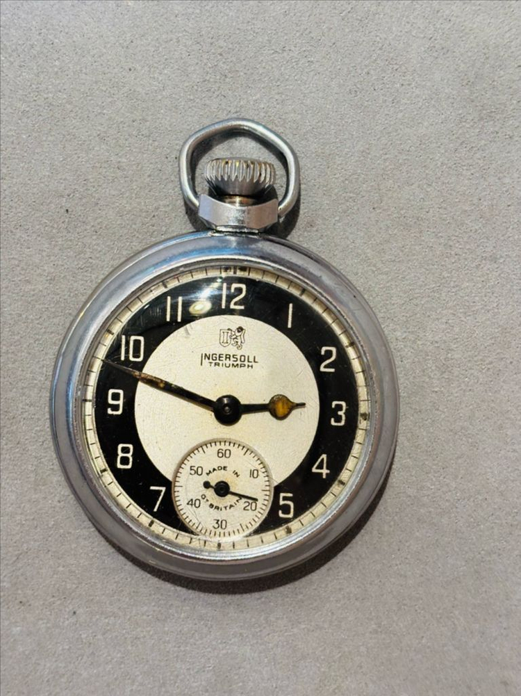 잉거솔 트라이엄프 빈티지 회중시계입니다. 케이스와 글라스 생활기스 있습니다 회중시계 체인도 서비스로 같이 보내드립니다. 무보정 사진이므로 상세 사진을 확인바랍니다. 기계식 시계이니 만큼 상단의 용두를 감아서 작동합니다 시간조정은 용두를 누르며 돌리면 됩니다 빈티지 수동시계 특성상 일오차가 있을 수 있습니다. 오픈하여 + - 속도조절 스위치로 잘 조절하면 크게 오차없이 사용하실수 있습니다. made in Great Britain Size : 51 mm Color : 스틸 - 모든 시계는 제가 직접 깨끗이 청소하고, 24시간 이상 동작 확인 및 기본적인 정비를 하여 이상이 없는 제품만을 판매합니다. - 빈티지 제품은 특성상 사용감, 스크래치 등이 존재하며 이러한 경우 사진과 함께 최대한 자세히 설명을 하도록 노력하고 있습니다. - 새상품이 아니므로 초기 불량 이외에는 A/S, 교환, 환불이 어려우니 궁금한 점은 문의주시고 구매바랍니다.
