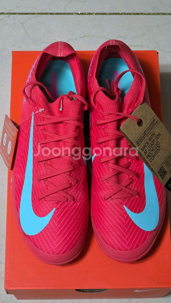 나이키 베이퍼 16 프로 TF제품입니다. 사이즈 270mm 입니다. 한 게임 중 조마 리액티브랑 전후반 교대로 착용해보고 그대로 다시 포장하여 보관중입니다. 새 신발냄새 그대로 납니다. 나코탭 그대로 붙여놨어요 지역은 울산이고 택송시 택배비 4000원 플러스입니다.