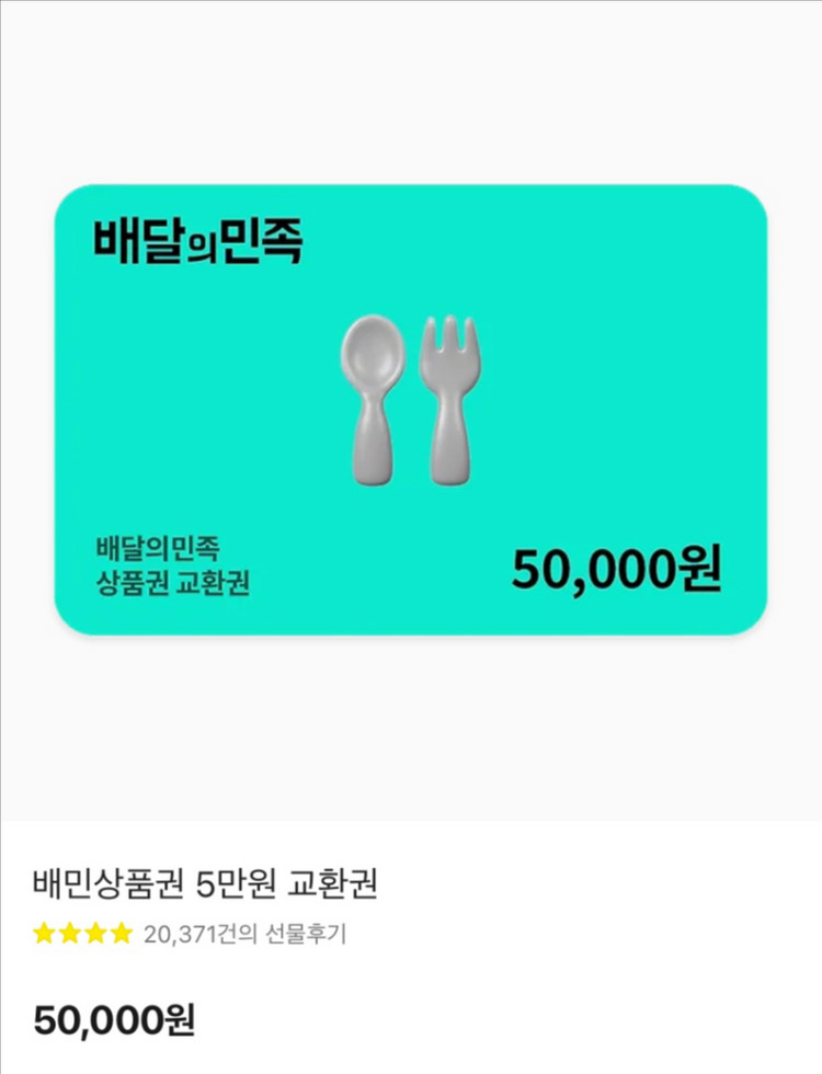 배달의민족 배민 5만원권 기프티콘