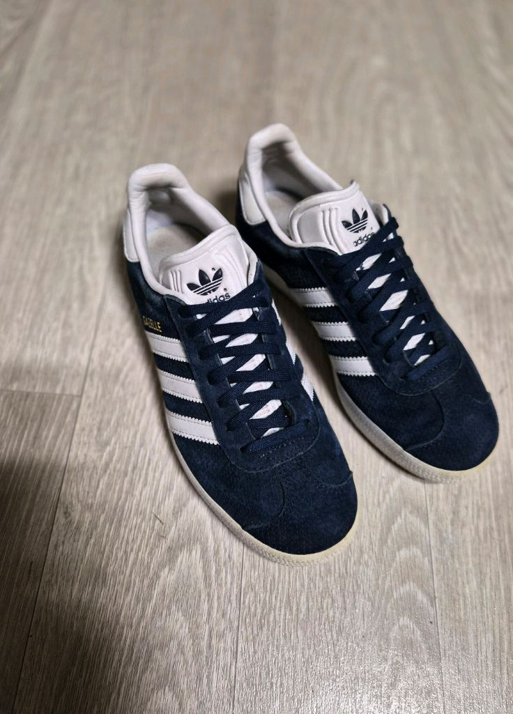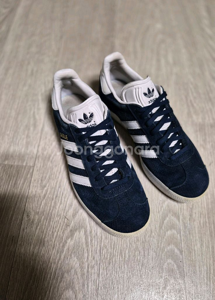 아디다스 가젤 스니커즈 네이비 색상입니다 사이즈는 230mm이고요, 편하게 신기 좋아요! 전체적으로 깨끗하게 신었습니다 택비3천원 *5만원이상 구매시 택배비 무료 *다른 옷들도 많아요 구경오세요~ *상세사이즈 확인바랍니다 *중고거래 특징상 교환,환불 불가함을 양해바랍니다 *의류 대부분 세탁해서 보관중이라 바로 착용가능하세요