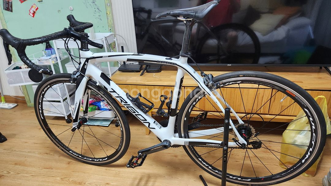1. 상품명: 트리곤다크니스 SL-2 (풀업글차, 풀 울테그라 8000, 풀카본, 구동계&휠셋&체인 교체후 약5킬로 주행) *풀업글차 *사이즈: 사이즈 52 (차주키:179) *구동계(100퍼 전체 업글- 풀 울테그라 8000, 체인까지 교체): 전체 업글 후 5킬로주행 (사업 때문에 몇년 새워둠) *휠셋(업글): 펄크럼 레이싱 콰트로 LG 17C (에어로타입, 신형622 X 17C) *핸들(업글): 본트레거 두께31.8MM, 길이42CM 에어로타입 알루 핸들바 *전립선 안장교체(EVO EXPERT) *페달: 경량 고급 베어링 페달교체 *백미러장착. 2. 가격: 98만 3. 제품설명: 풀 업글차, 사진참고, , 핸들만 생활기스정도 4. 서비스: a. 자전거 정비세트(왁스, 최고급체인오일, 파워디그리셔, 최고급 오일 제거제, 자전거 최고급 구리스, 청고솔, b.로드용 튜브 3개, c.고급자전거미니 열쇠, 자전거 핸들 엔드캡, d.핸들바테잎(새거1개, B급1개) 5. 제품상태: 상태 좋아요. 휠셋 및 구동계 전체 업그레이드 후 사업 때문 약 5키로 주행. 6. 거래방법: 직거래만 가능 (응구둘둘둘오육사구) 문자만 주세요.