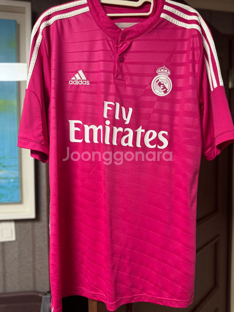 정품 레알 마드리드 14-15 시즌 호날두 유니폼입니다. 희귀한 핑크색 레어템이구요 ㅎㅎ 사이즈는 해외 M 사이즈입니다. 편하게 문의 주세요! 구매하시면 의류 보관 커버와 어깨 늘어짐 방지 옷걸이도 서비스로 드립니다^^