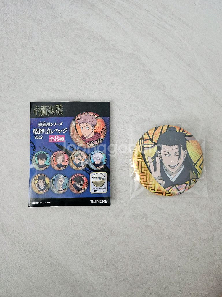 이 캔 뱃지는 인기 애니메이션 '주술회전'의 캐릭터인 게토 스구루가 그려져 있으며, 라덴(자개)풍 디자인과 호일 스탬핑(박 인쇄) 기법이 적용되어 빛에 따라 반짝이는 특징이 있습니다 랜덤이라 개봉후 확인후 다시 잘넣어났습니다😃 산금액보다 싸게드립니다!