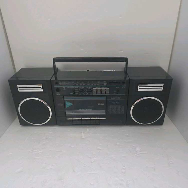 옛날 대우 스트레오 라디오 카세트 붐박스 ARS-7016입니다. 세월의 흔적이 있고 사용감은 있지만 대체로 상태 좋습니다. 라디오 작동은 잘 되고 카세트는 밸트 교체해서 사용하셔야 합니다. 드라마 영화소품이나 소장용 인테리어용으로 좋습니다. 연락주세요. 010-6637-9981