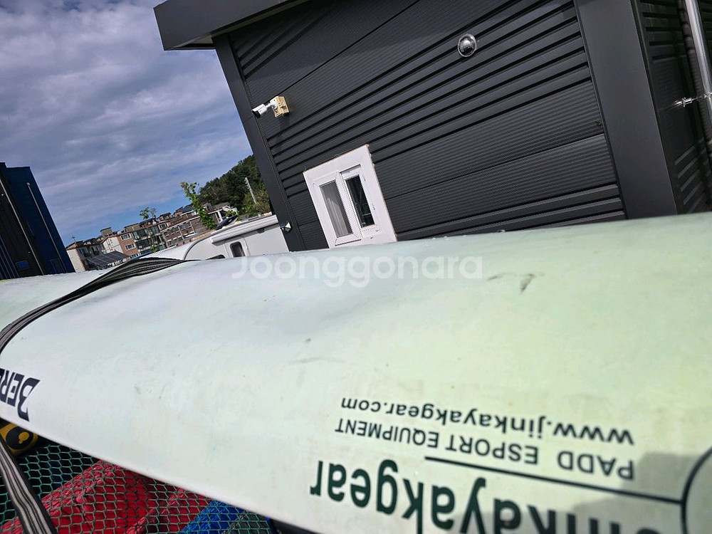 뉴질랜드 바이킹카약 원가220만 2년전구매 2회출조 갑바천 씌워서 보관했으나 보관을잘못해서 바닥두군데가 변형됐군요 복원해서 타시면 됩니다 서프스키보단 안정성이좋고 물튐이 적습니다 길이 5.7미터 폭63센치 가량나옵니다 천안직거래만