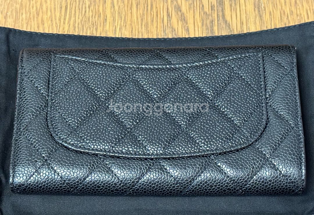 샤넬 장지갑 캐비어 금장 블랙 제품 판매합니다. 20번대, 시카고 샤넬 매장에서 구입했습니다. 물건 아껴서 드는 편이고 많이 사용하지 않아 상태는 좋은 편이에요. 사진 참고 부탁드립니다. 파우치는 오래 사용하지 않고 보관해뒀더니 갈라지는 것처럼 군데군데 떨어짐 현상 있습니다. 하남 미사, 서울 잠실에서 직거래 가능합니다. 중고거래 특성상 구매 후 교환/환불 불가능합니다.
