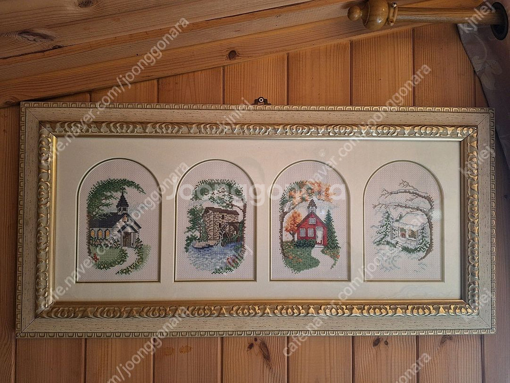 경기도 성남이나 강원도 평창에서 직거래 가능하며 각 2만원입니다. 1. 교회, 물레방앗간, 집 등의 건물과 나무를 통해 사계절 풍경을 표현한 사계 액자입니다. 전면 유리 있으며 대략 80*39. 2. 소녀와 소년이 그림 하나 하나마다 소품과 의상으로 계절을 표현하여, 한 액자로 4가지 계절을 보여주는 사계 액자입니다. 전면 유리 있으며 대략 76*33.