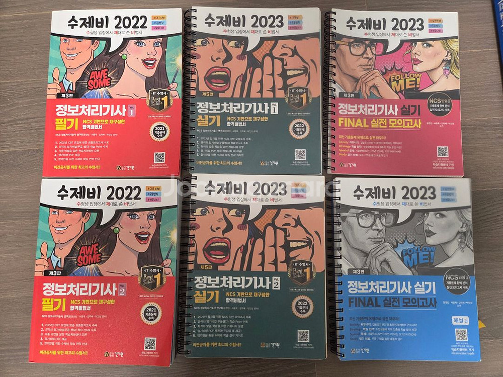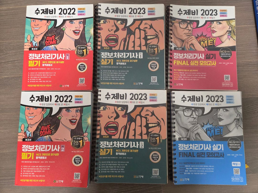 수제비 정보처리기사 수험서 1. 2022 수제비 정보처리기사 필기 1, 2권 - 일부 몇 장만 문제 풀이 (필기, 낙서는 없음) 2. 2023 수제비 정보처리기사 실기 1, 2권 - 1권 : 일부 몇 장 문제 풀이 - 2권 : 문제 풀이 많음 3. 2023 수제비 정보처리기사 실기 Final 실전모의고사 총 2권 - 문제풀이, 필기 거의 없음 오염 없이 매우 깨끗합니다. 택배 거래, 무료 배송