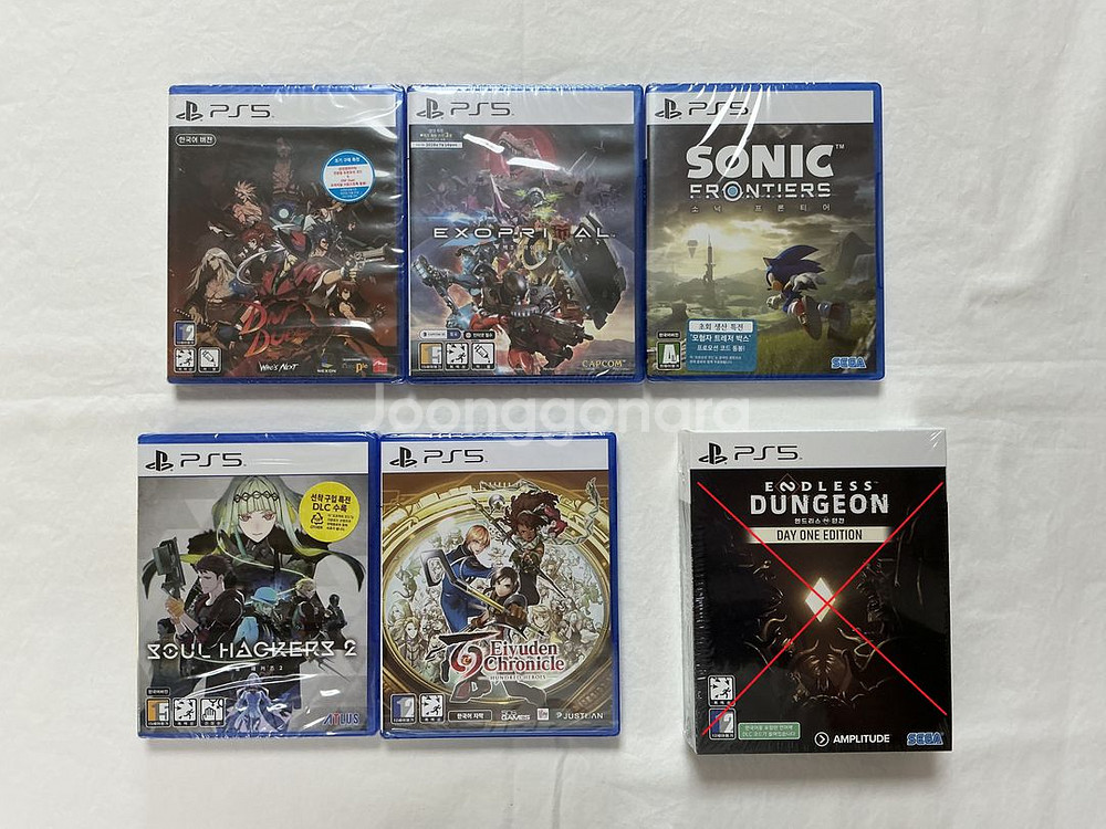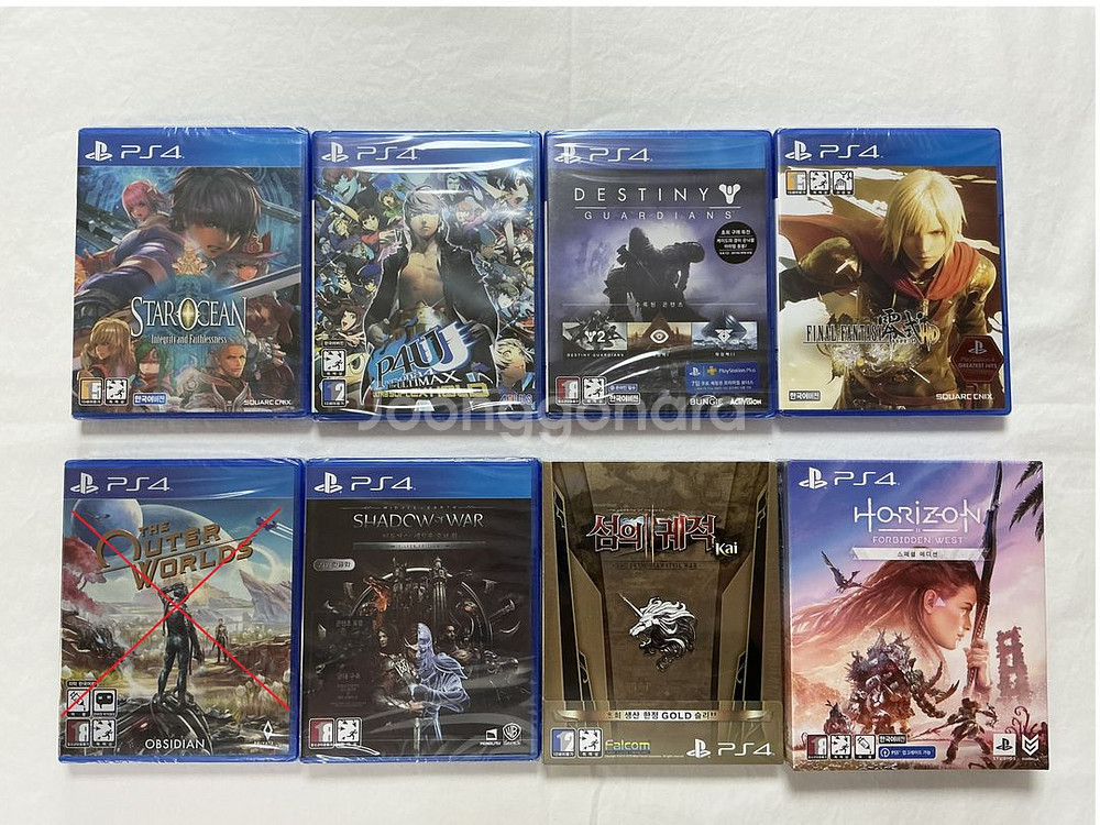 [미개봉 / 중고] PS4 / PS5 타이틀 팝니다 [미개봉] 항목은 미개봉 신품이고 [중고] 항목은 개봉 상품으로 상태 모두 양호합니다. 택배비는 별도입니다. 📍 거래 방식 직거래 가능 택배 거래 가능 (배송비 별도) - 4,000원 CU끼리 반값택배 가능해요 - 2,000원 [미개봉] - 미개봉 신품 - PS5 타이틀 01 1. 드래곤 에이지: 더 베일가드 – 40,000원 2. 데드 스페이스 리메이크 – 60,000원 3. 스타워즈 제다이: 서바이버 디럭스 에디션 – 60,000원 4. 신듀얼리티: 에코 오브 에이다 디럭스 에디션 – 10,000원 5.삼국지8 리메이크 – 60,000원 7. 메탈기어 솔리드 마스터 컬렉션 Vol.1 – 30,000원 8. 워해머 40,000: 스페이스 마린 2 – 50,000원 [미개봉] - 미개봉 신품 - PS5 타이틀 02 9. DNF 듀얼 – 30,000원 10. 엑조프라이멀 – 5,000원 11. 소닉 프론티어 – 20,000원 12. 소울 해커즈 2 – 10,000원 13. 백영웅전 – 36,000원 [미개봉] - 미개봉 신품 - PS4 타이틀 1. 스타 오션 5: Integrity and Faithlessness – 10,000원 2. 여신전생 페르소나 4 얼티맥스 울트라 수플렉스 홀드 – 10,000원 3. 데스티니 가디언즈 레전더리 컬렉션 – 5,000원 4. 파이널 판타지 영식 HD – 15,000원 6. 미들 어스: 섀도우 오브 워 실버 에디션 – 10,000원 7. 영웅전설 섬의 궤적 2 Kai 초회 생산 한정 GOLD 슬리브 – 20,000원 8. 호라이즌 포비든 웨스트 스페셜 에디션 – 35,000원 [중고] - 개봉상품 - PS5 타이 1. STRANGER OF PARADISE 파이널 판타지 오리진(PS5) - 10,000원 2. 시푸 벤젠스 에디션 - 30,000원 5. 와일드 하츠 - 30,000원