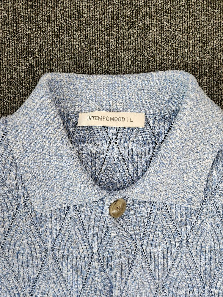 제품명 : 인템포무드 콤프 패턴 가디건 비스타블루 사이즈 : L 사이즈 상태 : 1회 착용 https://intempomood.com/product/detail.html?product_no=727&cate_no=43